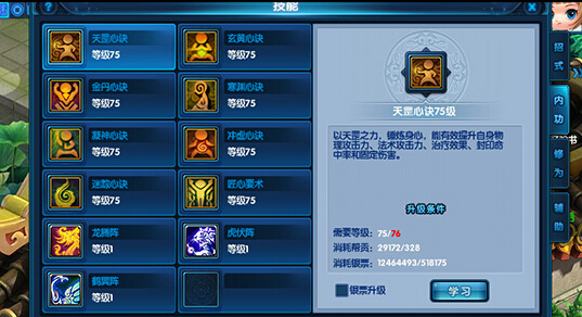 进入到《桃花源记2》的游戏中,在等级提升的同时,不要忘记提升内功哟。内功的升级会提升大量的战力。点内功需要经验和银卷,是提升战力必不可少的途径。