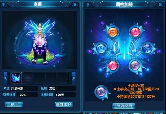 周五新名扬区,羽翼系统已经开放体验,属性非常逆天,涵盖各种属性以及特效,所以小伙伴到75级之前要提前存好翅膀,最便宜小翅膀大概3W金票左右,大翅膀祝福时限更长点,每次祝福消耗经验20W,新区相对来说比较缺乏经验,要量力而为,不要过于追求橙色属性。