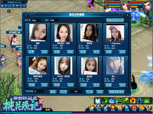 桃花女神大选决赛现已全面拉开序幕,女神级美女玩家从数千位参选玩家中杀出重围,成功入选最后的决赛,对第一女神宝座展开激烈的角逐,竞选氛围空前火爆,排名更是此起彼伏!喜欢她们的小伙伴赶快去为你心中的女神投票送花吧,助力她们成为第一女神!