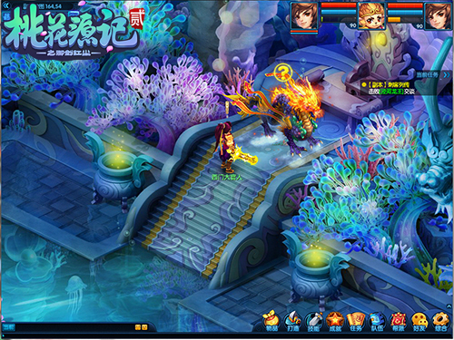 《桃花源记2》全新90级副本“洞庭龙梦”以唐传奇中的《柳毅传》为蓝本,从狄仁杰查案视角缓缓切入,刻画了一段风波迭起、险象环生的传奇故事。关中一带突降暴雨,洪灾泛滥,武皇陛下夜得一梦,见泾阳府书生柳毅,替洞庭龙女鸣冤叫屈,梦醒即曰,关中暴雨实乃龙女之泪所生,遂命狄仁杰召集天下勇士前往查探。在查案过程中,小伙伴们不仅将一步步揭开疑云重重的传奇故事,见证柳毅和小龙女的传奇爱情,更将收获丰厚的宝藏。同时,如梦似幻的龙宫副本地图全面开放,绮丽斑斓的珊瑚,随海水轻轻摇动的水草,缓缓吞吐的气泡,美丽的龙宫实则危机四伏,只有智勇双全的勇士才能顺利揭开谜底,成功通关,你敢来挑战吗?90级装备材料、90级装备书、金票等你拿哦!