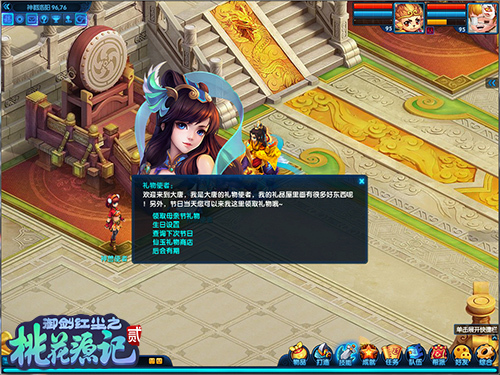 不仅如此,在角色预创建和各种节日里,小伙伴们还会获得一定数量的仙玉,可以到神都洛阳的礼物使者处用来兑换游戏所需的各种必备道具,甚至还能兑换获取神兽所必须的材料金松果,轻松实现你的神兽梦!正所谓天道酬勤,小伙伴们的每一分付出将在《桃花源记2》中获得回报。