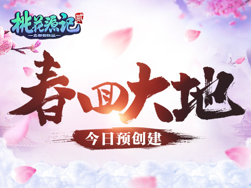 黄莺鸣脆柳,紫燕剪春风!好玩不坑钱的免费回合网游《桃花源记2》新服“春回大地”将于今日12点准时开启角色预创建,并于3月9日正式和大家见面!随着春季的到来,桃源世界一片生机,万物欣欣向荣,小伙伴们此刻加入,不仅可以感受到盛唐的活力四射,更有超多精彩福利活动来袭,畅玩2018,期待你的加入!