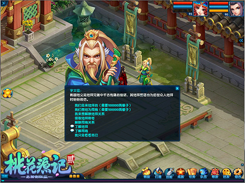 国产新派回合《桃花源记2》仙境江湖冒险现已开启!小伙伴们组队进入游戏后,到神都洛阳的宇文信处,即可进行义结金兰哦!成功结拜的小伙伴们不仅可以获得专属的称谓,还有超强加成BUFF,快速升级,提升战力,不在话下!新派江湖出征,全民共战等你加入,赶快行动吧!