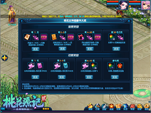 一年一度的桃源盛事桃花女神大赛正在火热开启中!来自各大区服上百位女神在线比美,诠释青春年华的终极魅力!不论你喜欢何种类型的女生,在这里你都将有机会和她来一次与众不凡的邂逅,开启一段独属于你们的美好回忆!