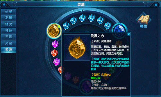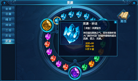 角色等级≥50级即可开启灵源系统,灵源系统按顺时针可划分为攻击类、防御类、辅助类三个区间,每个区间将会有不同属性限制的灵源宝石,可使用升级材料对灵源宝石进行升级,迅速提升战力哟!