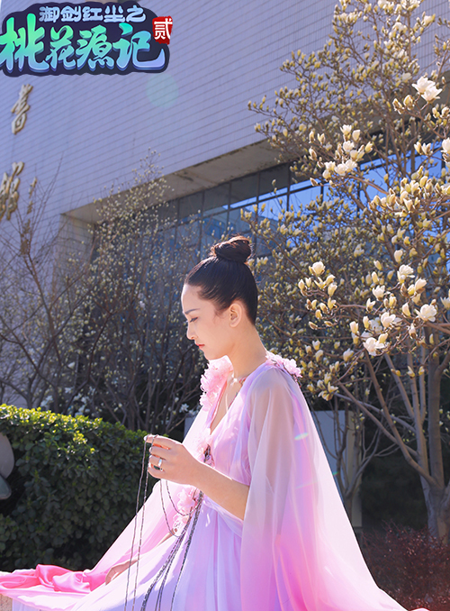 而这位来源于被服的校花的服装设计的灵感,正是来自于《桃花源记2》中的唯美国风。她自曝,十分喜欢《桃花源记2》里的唯美国风,更是对盛唐文化充满了憧憬。众所周知,盛唐时期国力鼎盛,唐装大气华丽,服装材质多以丝绸轻纱为主。而牙司曼设计的时装,以桃粉色为主色,以轻纱裁剪而成,最终设计完成。无论从服装的材质、样式还是色彩的搭配上,都传递出了极具中国风的绚丽与非凡。同时,这件时装上点缀了317朵桃花,寓意对《桃花源记2》公测的祝福。