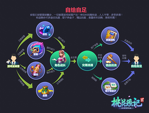 多年以来,回合制游戏内产出道具的绑定、宝石不可拆卸、属性不可继承的设定,一直深受回合制玩家的诟病。《桃花源记2》大胆推出回合制游戏新规则,对回合制经济系统重新定义,推出了全交易玩得起经济系统。