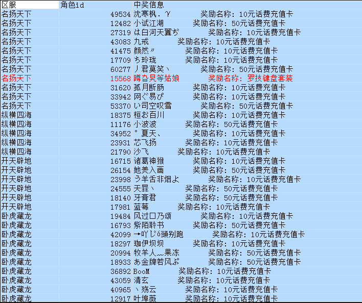 在此,我们恭喜以上获奖玩家,获得罗技键鼠套装以及话费充值卡奖品,请中奖玩家尽快联系客服提交信息,便于我们联系您发奖。
