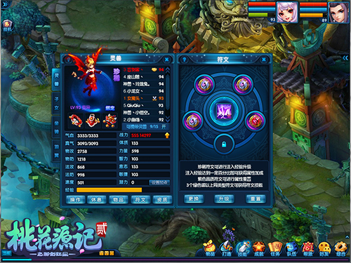 当有三个相同属性类型的珍稀符文镶嵌时,灵兽将会获得一个特有的符文技能!如提高物理必杀概率的物攻符文特技万钧,减少法术伤害的法防符文特技灵神和提升灵兽速度的速度符文特技迅敏等,六种符文特技加持,轻松提高灵兽作战实力!