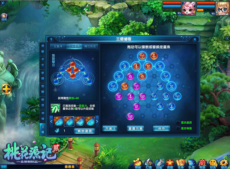 国产新派回合《桃花源记2》全新推出“三垣系统”,小伙伴们使用星尘合成“定星珠”拼出星图上对应的图案,还将额外获得技能加成,同时,随着凑成星图中的定星珠的等级提升,所对应的星图技能等级也会有所提升,小伙伴们还在等什么?为了灵兽实力的大幅度提升,是时候考验一下自己的能力啦!