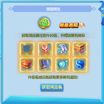 花少量金子解锁鸿运佩,还可开启更多稀有道具奖励,包括精灵之心、珍稀灵兽符文包、圣书上品残卷、鼠头鼠脑冒泡框(永久)等超值奖励!升一级福地,领两份惊喜,全部肝完有高达十五倍的奖励,史无前例重磅回馈,性价比高到飞起来!