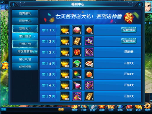 1. 首次登录游戏玩家立即领取价值666元迎新礼包;