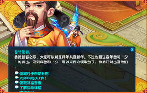 2、找春节使者领取拜年任务,活动期间,30级以上的玩家每人每天可以领取2次
