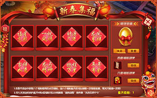 2、玩家可以在大拜年、群雄除夕和解救旺财活动中随机获得各种福贴,30级以上的玩家可以使用进行集福,每个玩家每天最多可以集齐一套福贴。