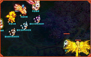 4、到相应的地图找到小年兽进行战斗,向旺财投掷对应的包子,可获得旺财的帮助;