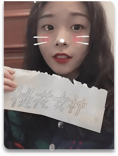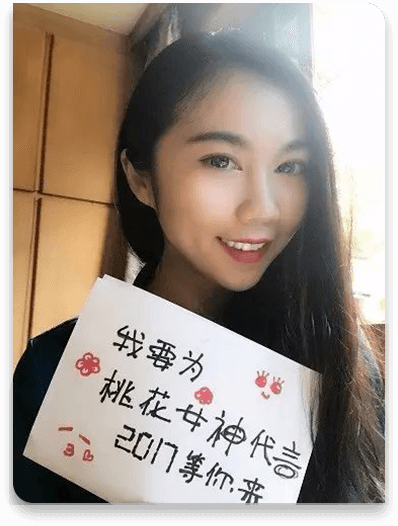 上传的照片中,请带有“桃花女神 2020”字样签名。
