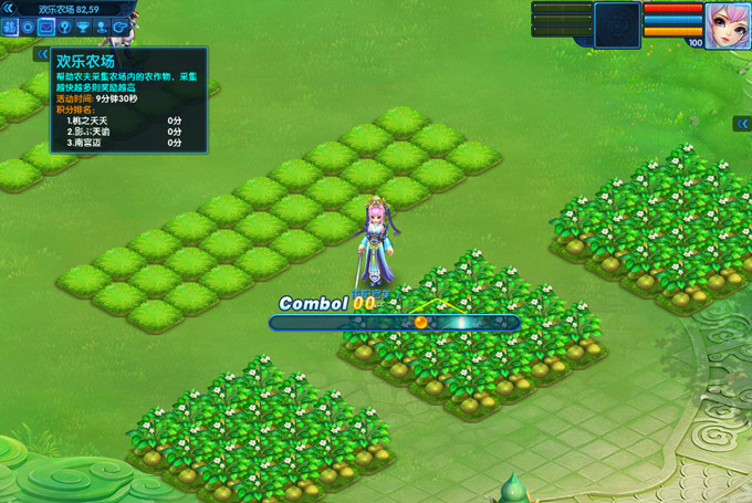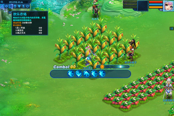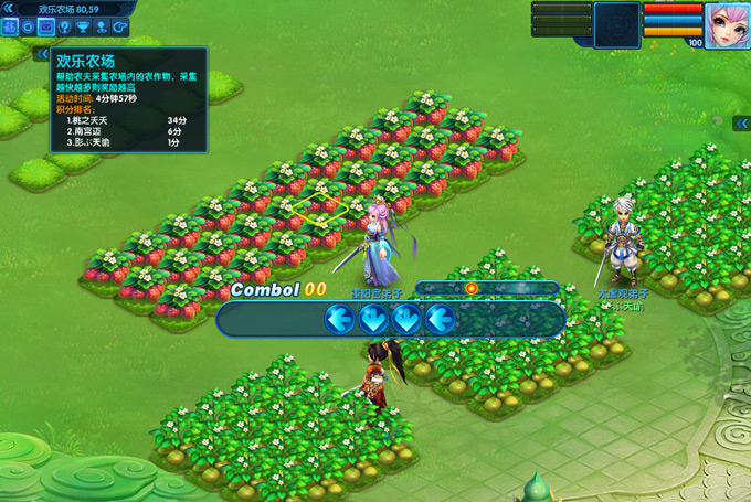 3、整个农场分为三个采集区域,随着活动时间逐步开放不同的区域,每个采集区域采集时都会触发不同的小游戏成功完成可获得不同的积分,采集分为完美和非完美,若是连续完美采集则可获得连击次数,连击次数可获得额外的积分加成,若出现失败或非完美采集则连击清0。