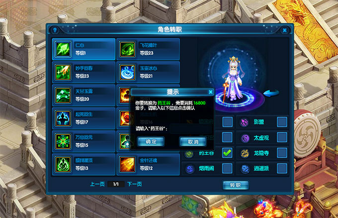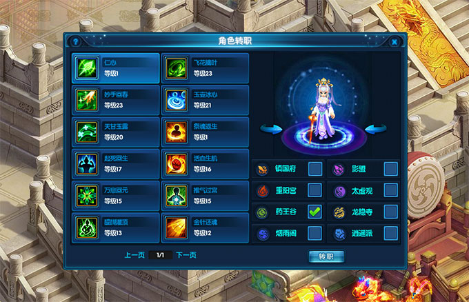 1、转职后,门派招式、门派传送、门派附魔替换为新职业的技能。