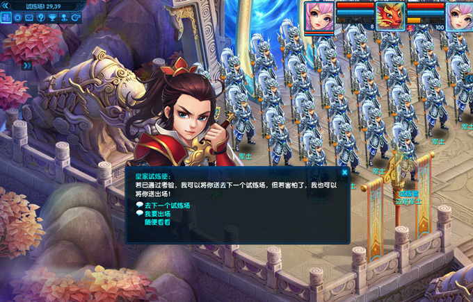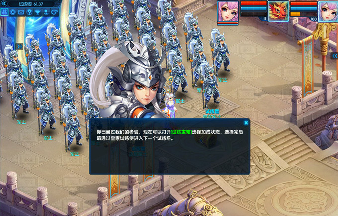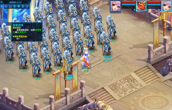 1、活动开始后,玩家组成5人队伍,通过洛阳“皇家试炼使”进入试炼场;