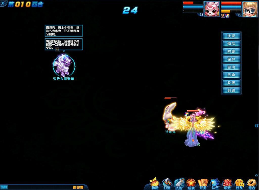 4、金麟会有几率逃跑,回合数越多逃跑概率越大,如果金麟逃掉,将会扣除被偷走的金票或银票,但偶尔也会获得其遗漏的物品;