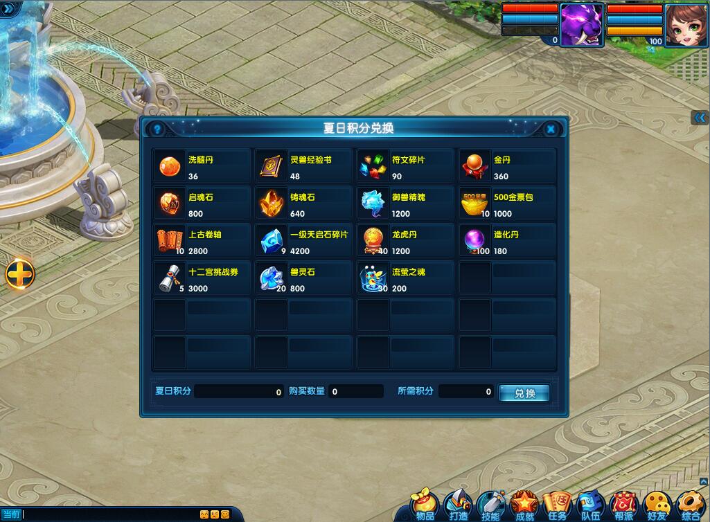 活动期间参与日常师门、御前宝藏、副本、十二宫、妖王等日常以及其他夏日活动可获得夏日积分,用积分可以兑换丰富物品。